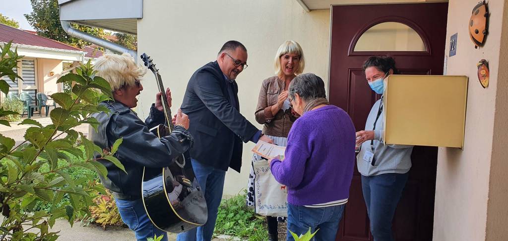 Déambulation musicale à la résidence Ambroise Croizat lors de laquelle nous avons fêté les anniversaires des 8 résidents nés en octobre.