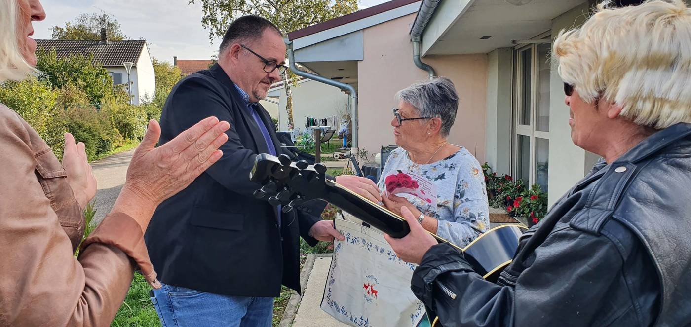 Déambulation musicale à la résidence Ambroise Croizat lors de laquelle nous avons fêté les anniversaires des 8 résidents nés en octobre.